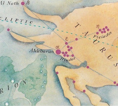 The Hyades consist of Theta1 (θ1) Taurus, theta2 (θ2) Taurus, gamma (γ, Prima Hyadum) Taurus, delta (δ Hyadum11) Taurus, and epsilon (ε Ain