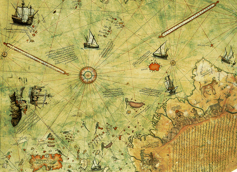 One great example is the Piri Reis map, a genuine document that was copied at Constantinople in AD 1513 from older documents and discovered in 1929. It focuses on the western coast of Africa, the eastern coast of South America, and the northern coast of Antarctica. It was drawn by Admiral Piri Reis of the Ottoman era, a well-known historical figure. He made a copy of the map, which was originally drawn based on documents that date back to at least the fourth century BC, and on information obtained by multiple explorers.